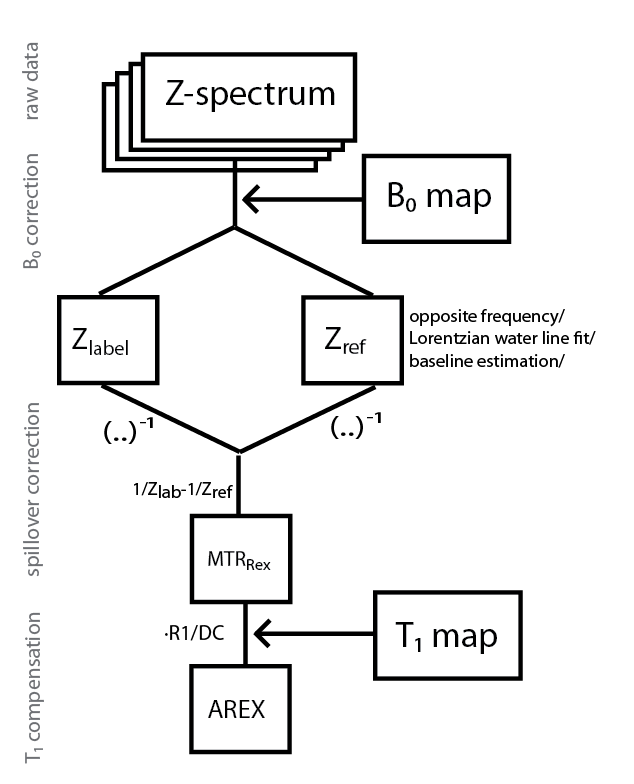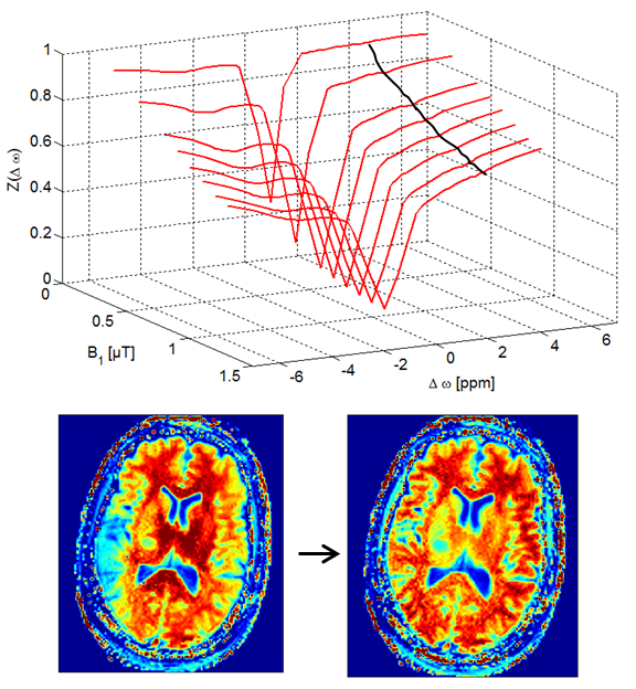 Here you find methods for CEST quantification. This means to achieve access to the CEST pool parameters as defined in the Bloch-McConnell equations such as exchange rate, concentration and transverse relaxation of the CEST site.